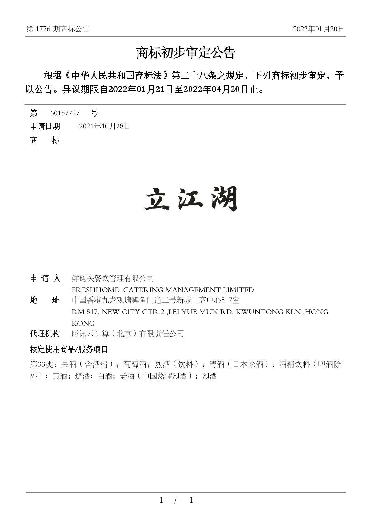 有效期限:2032-04-20 组合类型:中文注册号:60157727