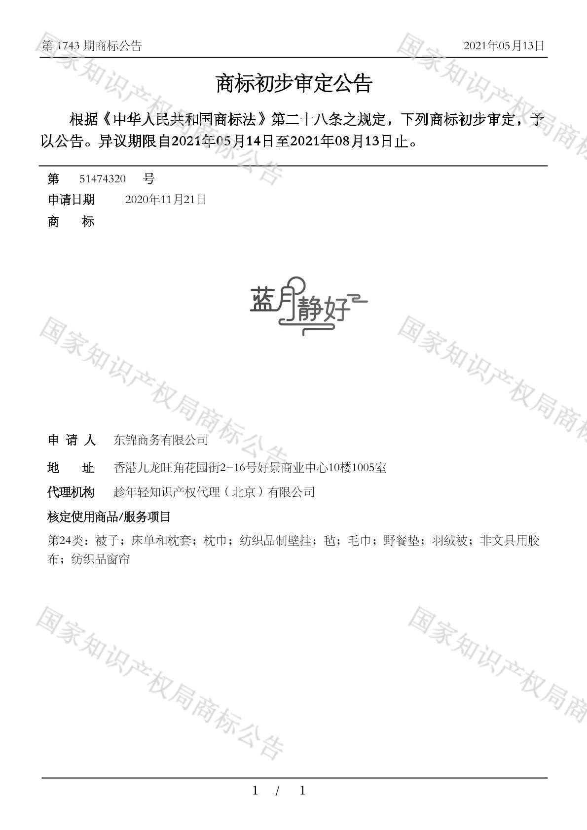 有效期限:2031-08-13 组合类型:中文注册号:51474320
