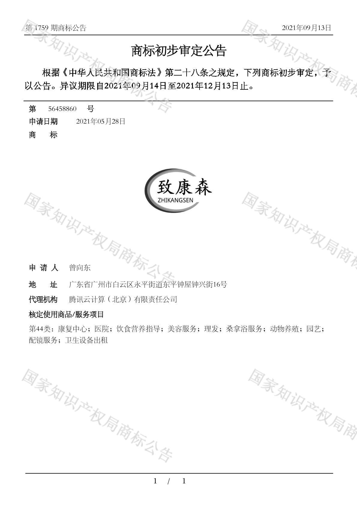 有效期限:2031-12-13 组合类型:中文注册号:56458860
