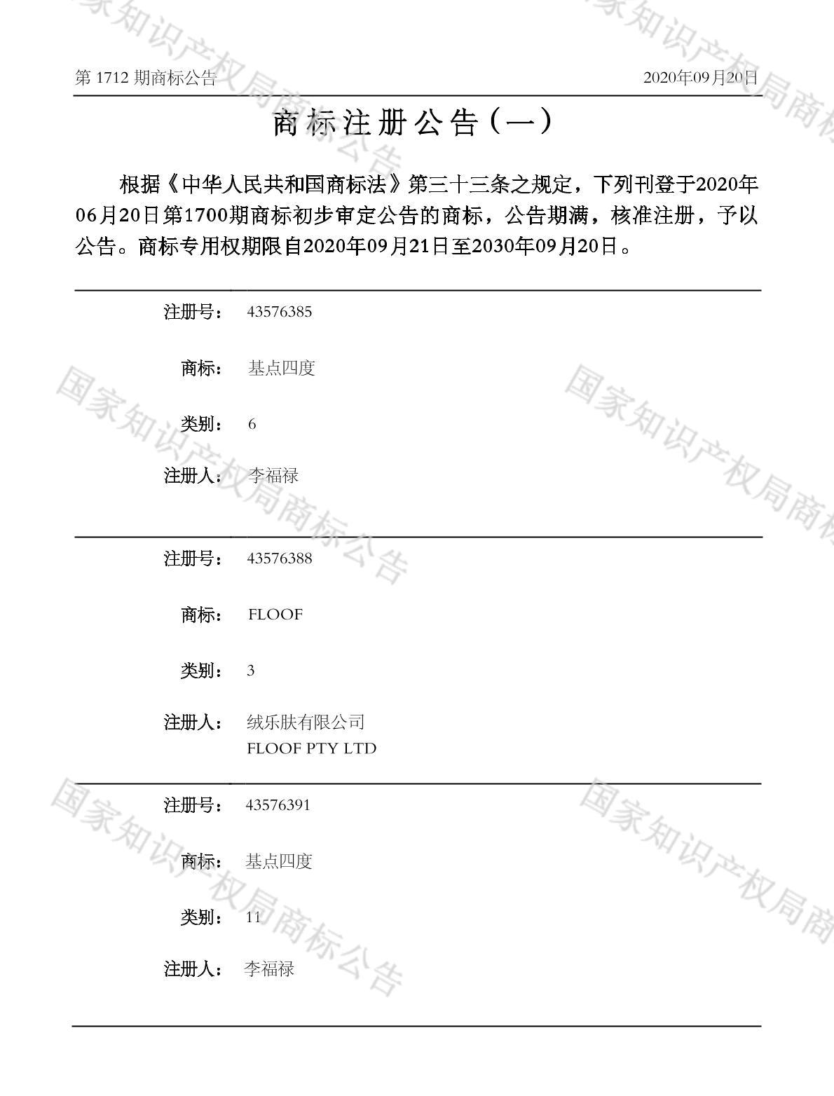 有效期限:2030-09-20 组合类型:中文注册号:43576385
