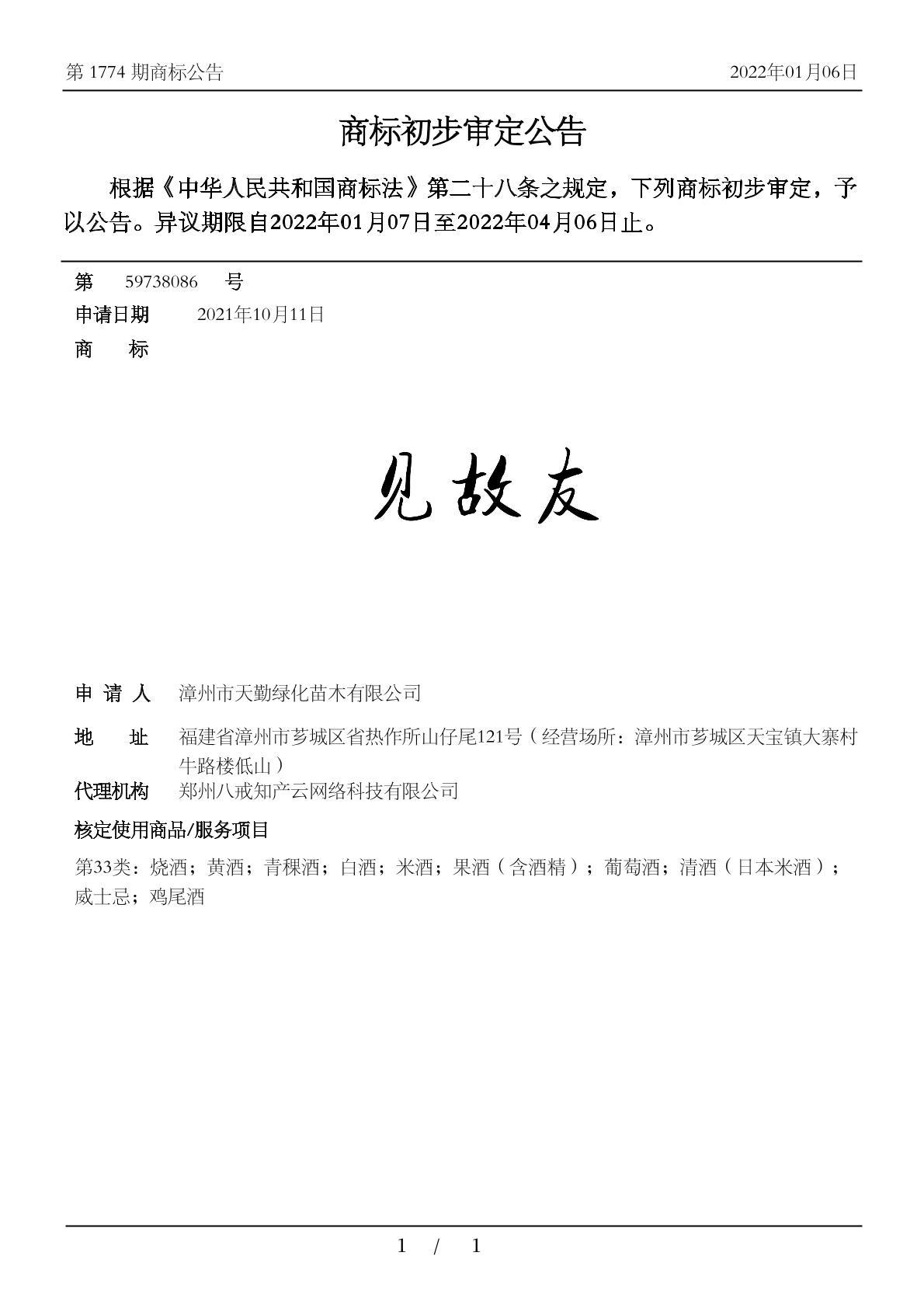 初审公告期号:1774