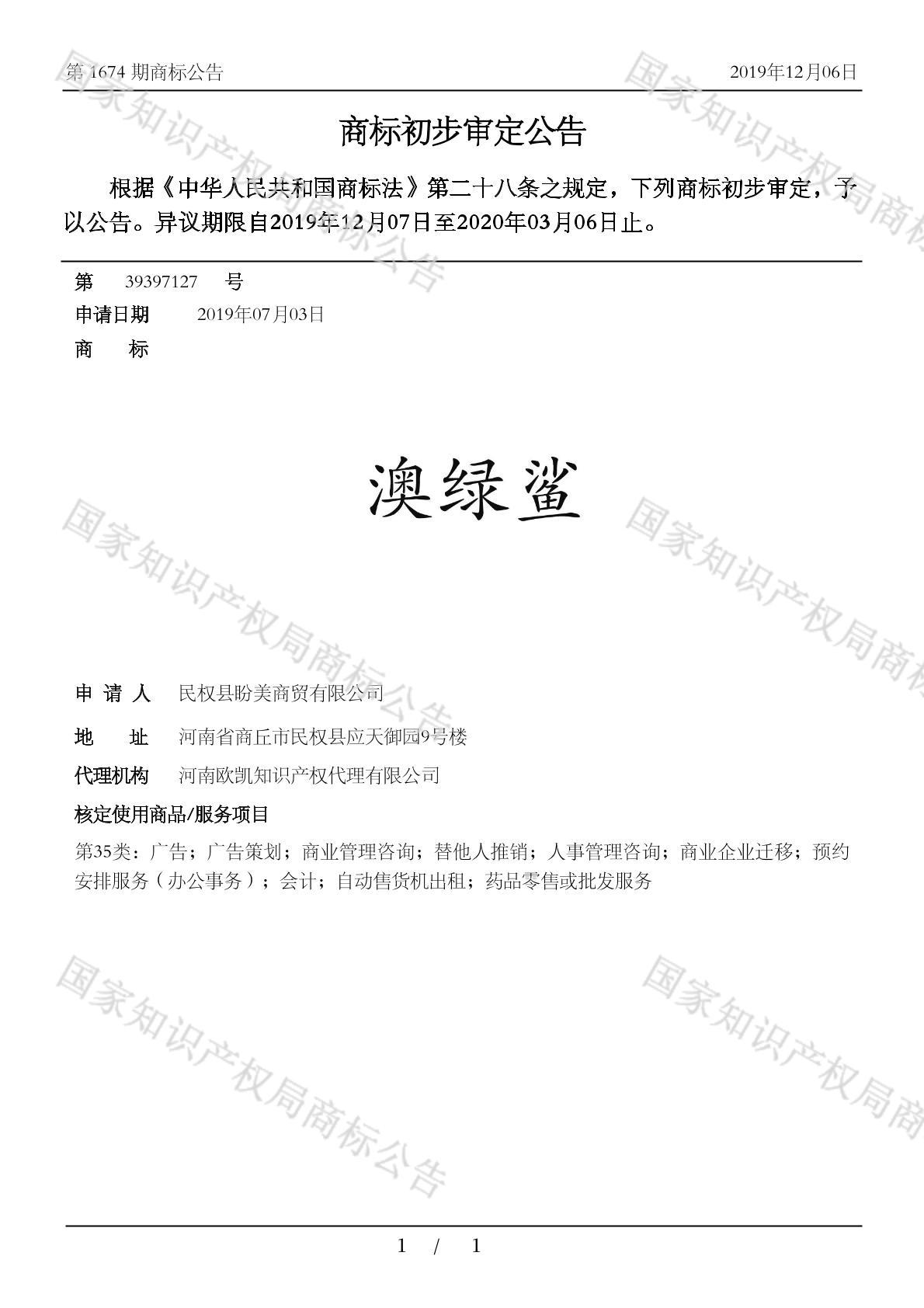 有效期限:2030-03-06 组合类型:中文注册号:39397127