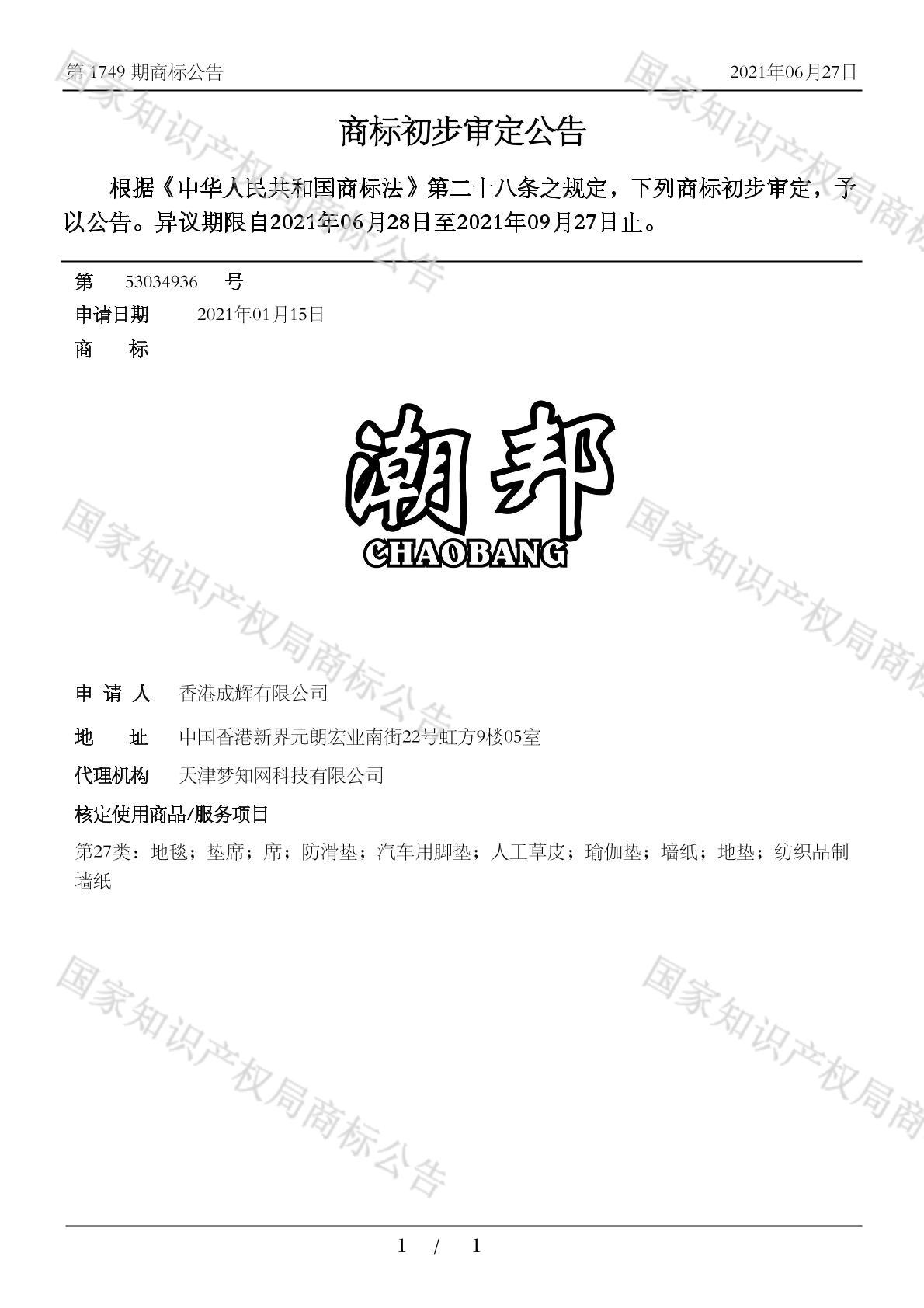 有效期限:2031-09-27 组合类型:中文注册号:53034936