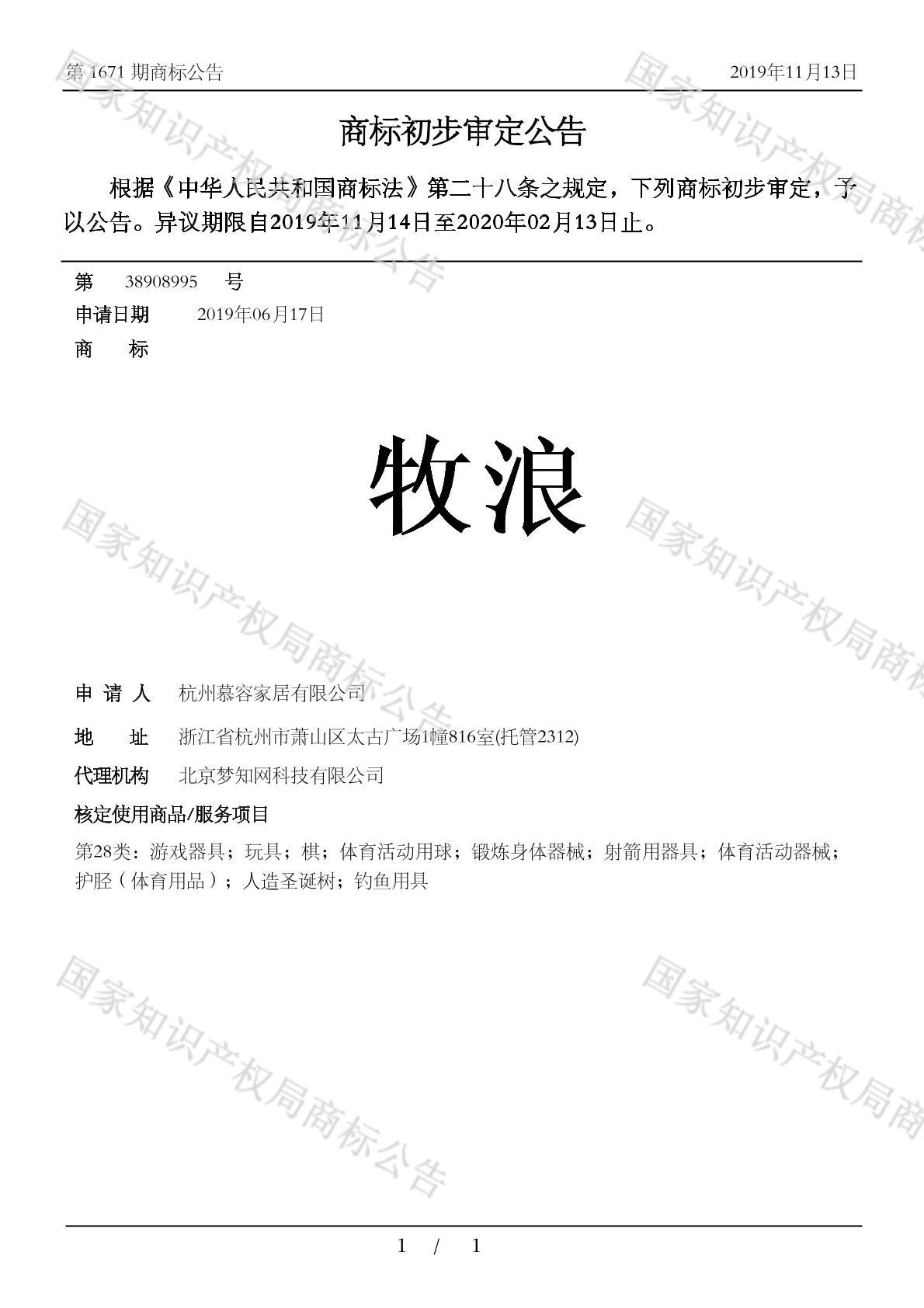 您当前位置:首页商标转让28类商标牧浪