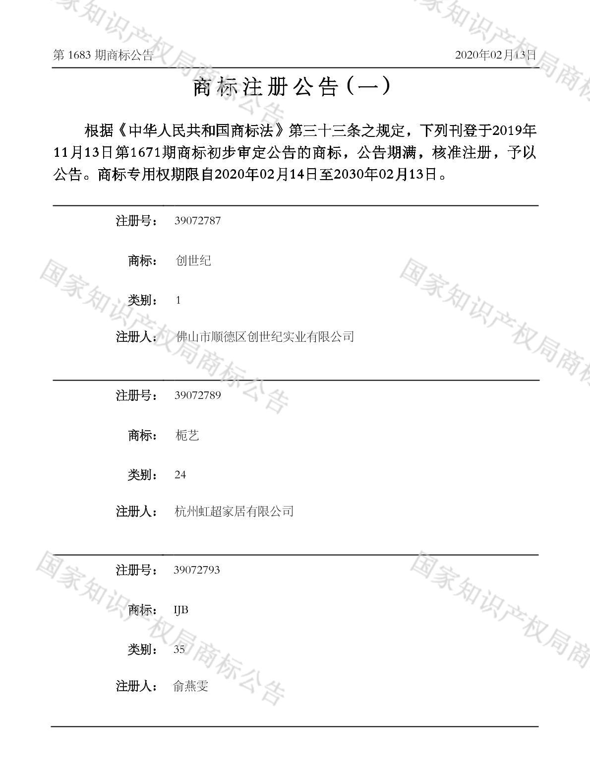 有效期限:2030-02-13 组合类型:中文注册号:39072789