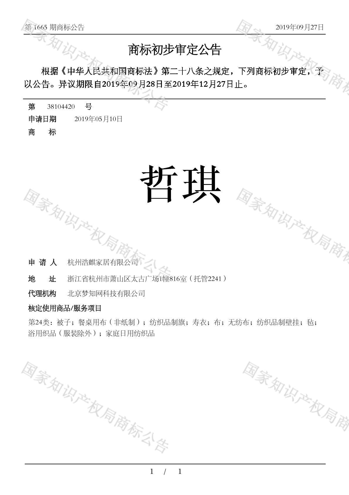 有效期限:2029-12-27 组合类型:中文注册号:38104420