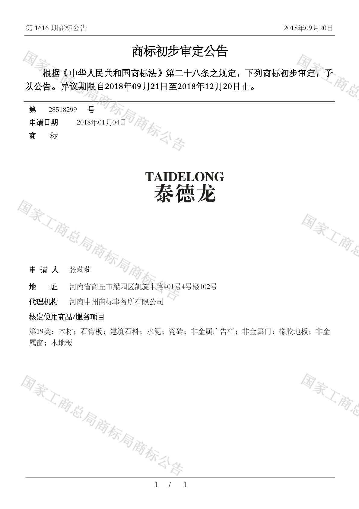 初审公告日期:2018-09-20