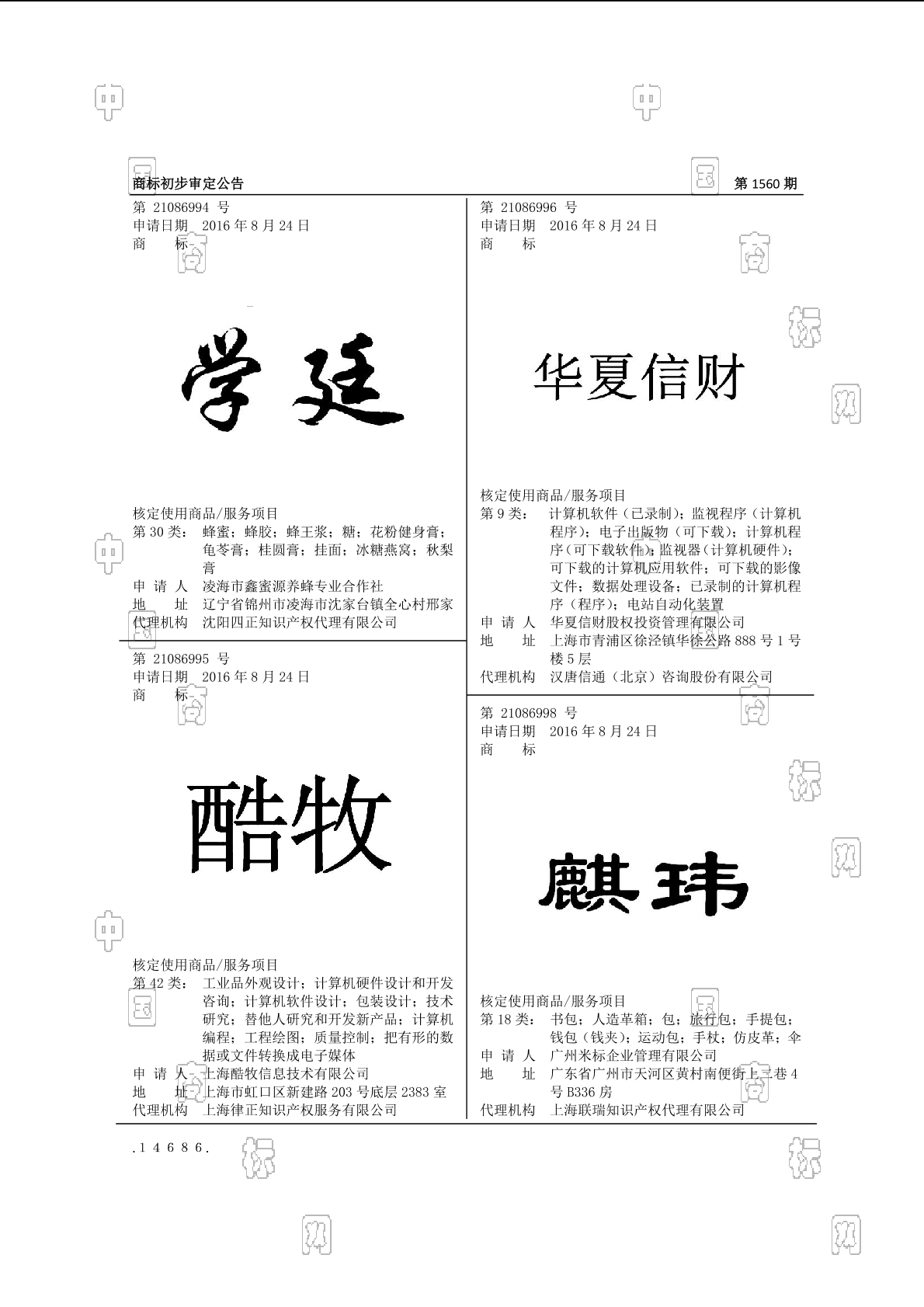 初审公告期号:1560