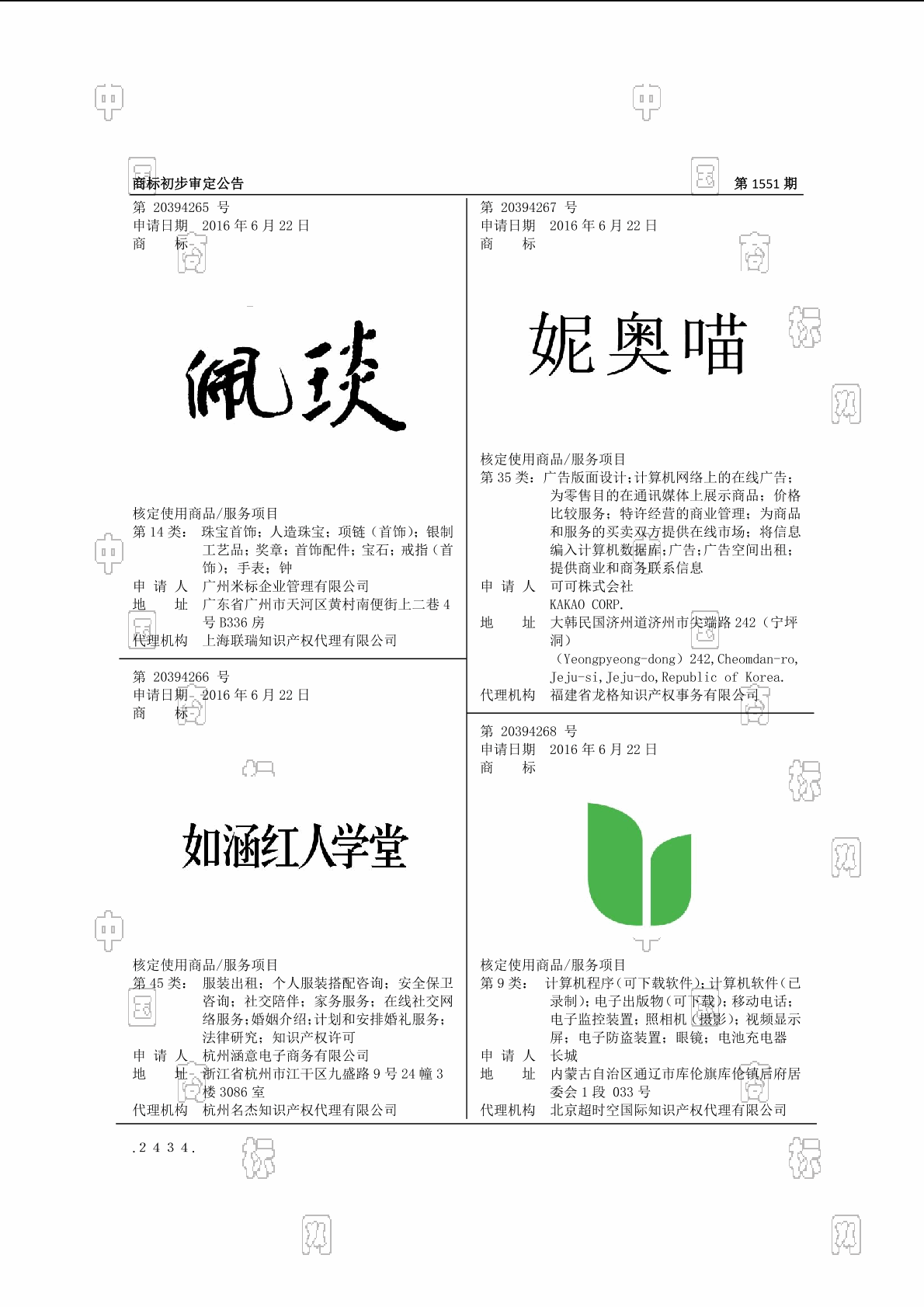 初审公告期号:1551