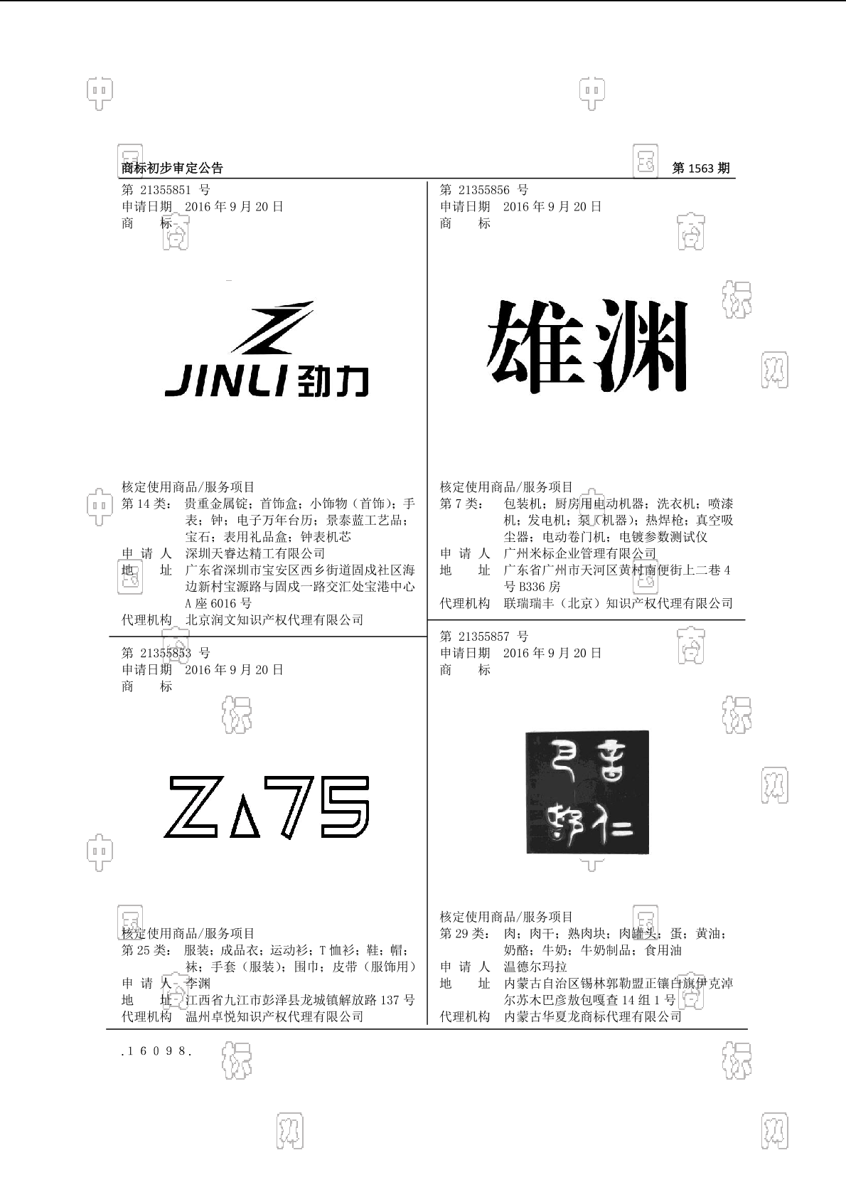 初审公告期号:1563