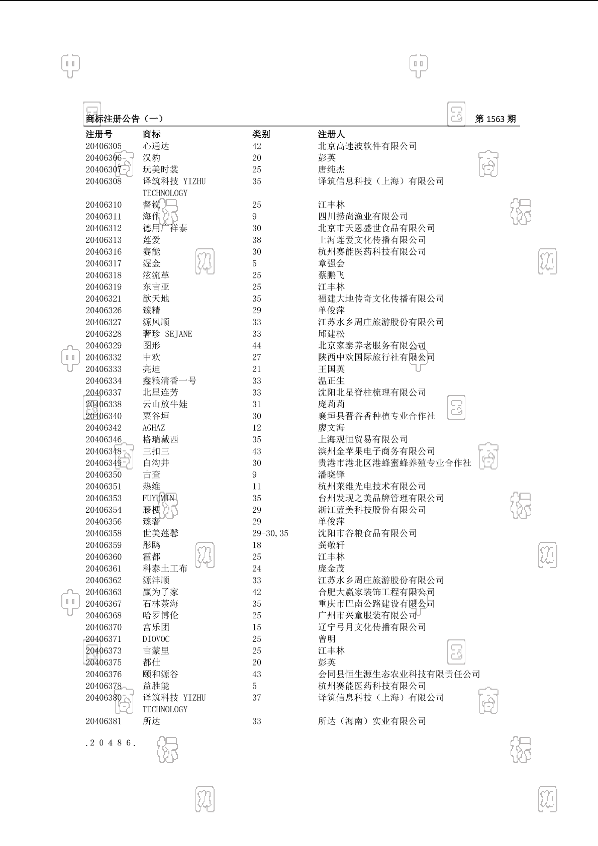 注册公告期号:1563