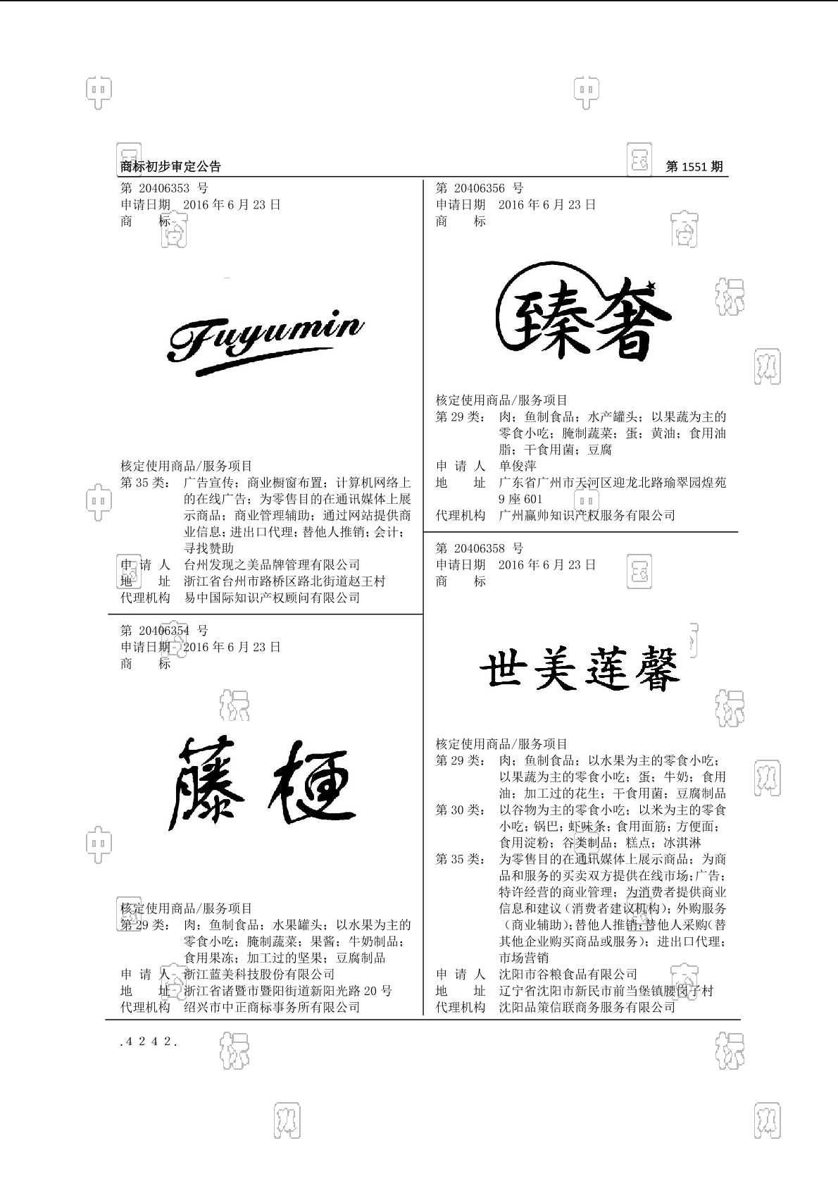 初审公告期号:1551