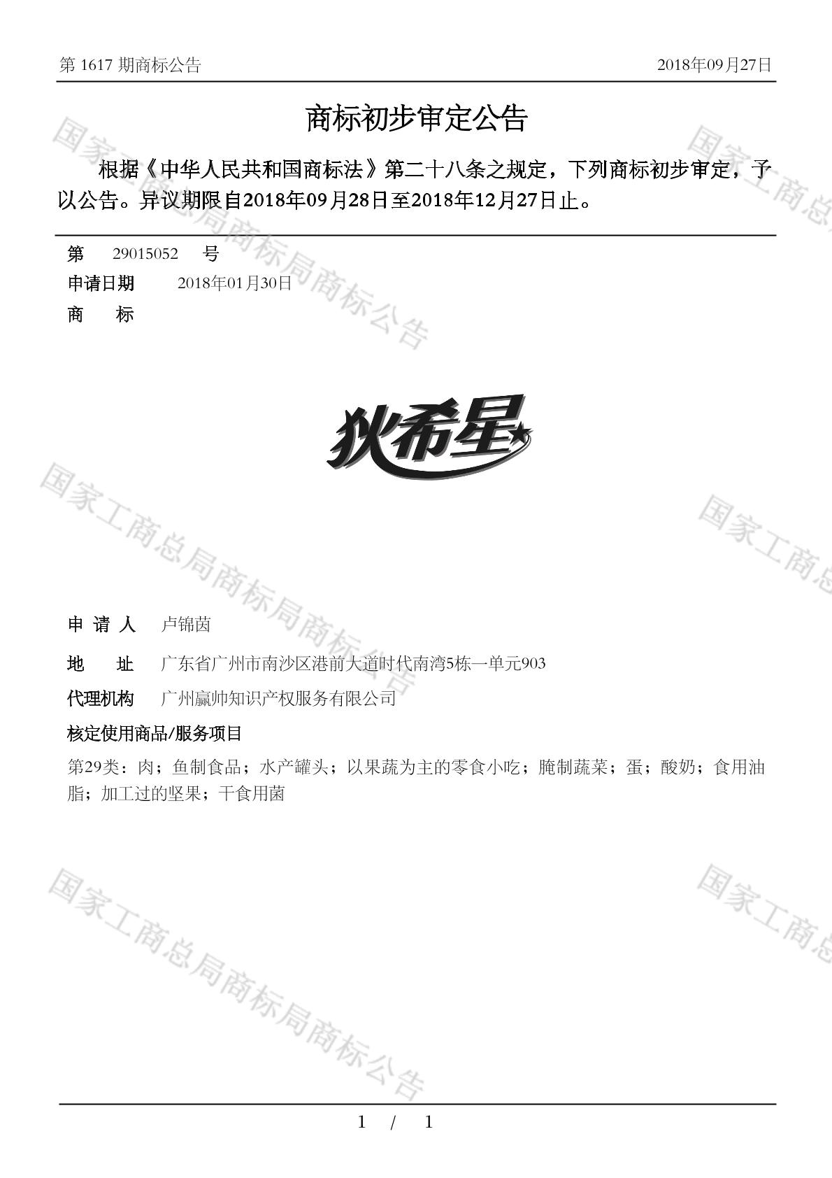 初审公告日期:2018-09-27