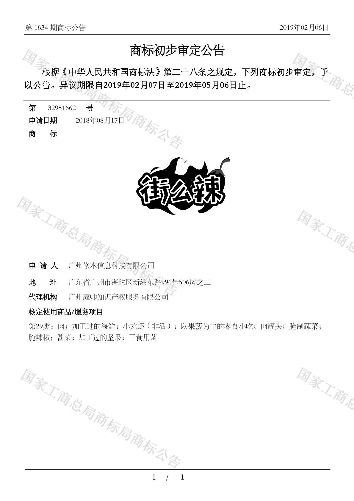 初审公告期号:1634