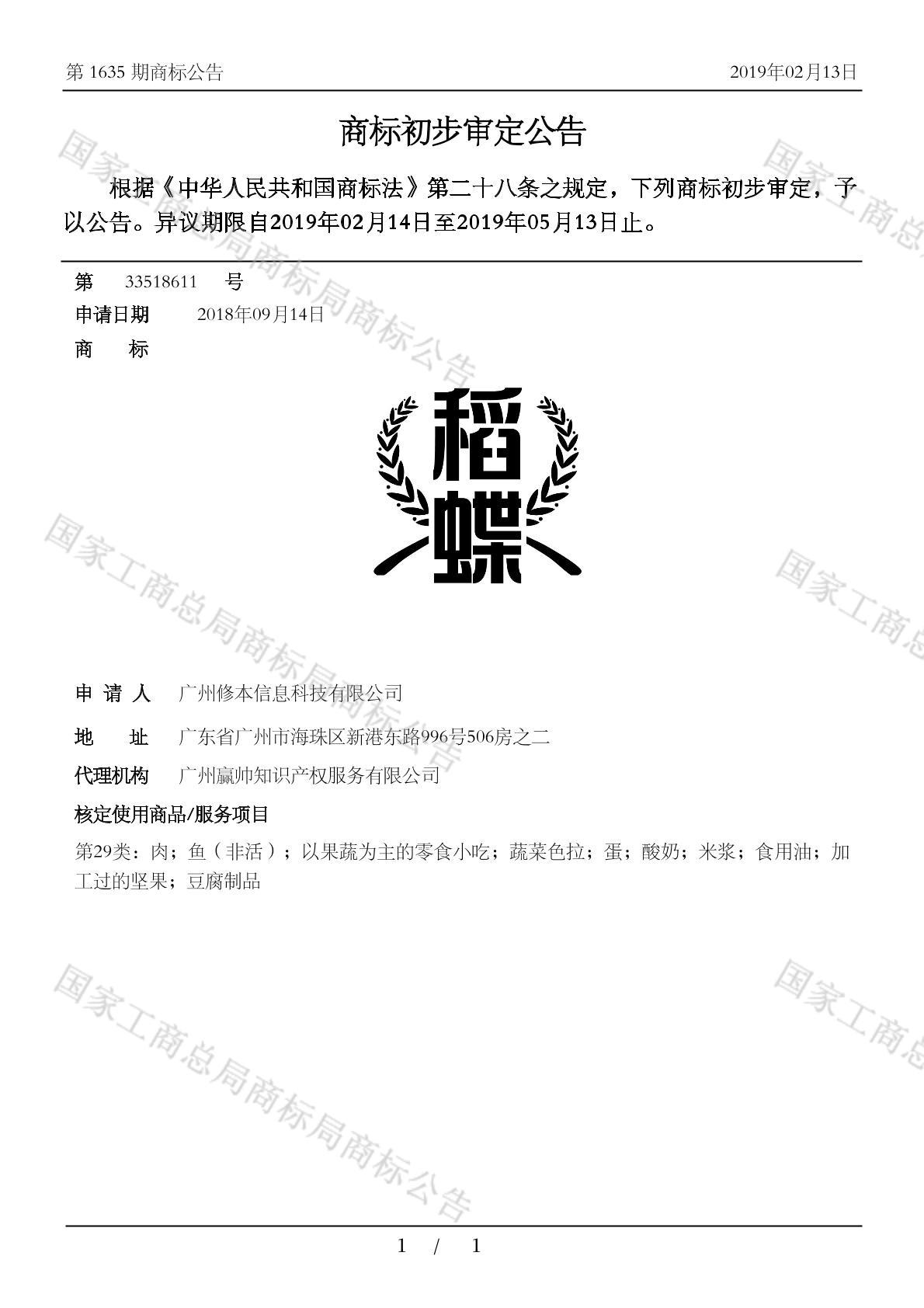 有效期限:2029-05-13 组合类型:中文注册号:33518611