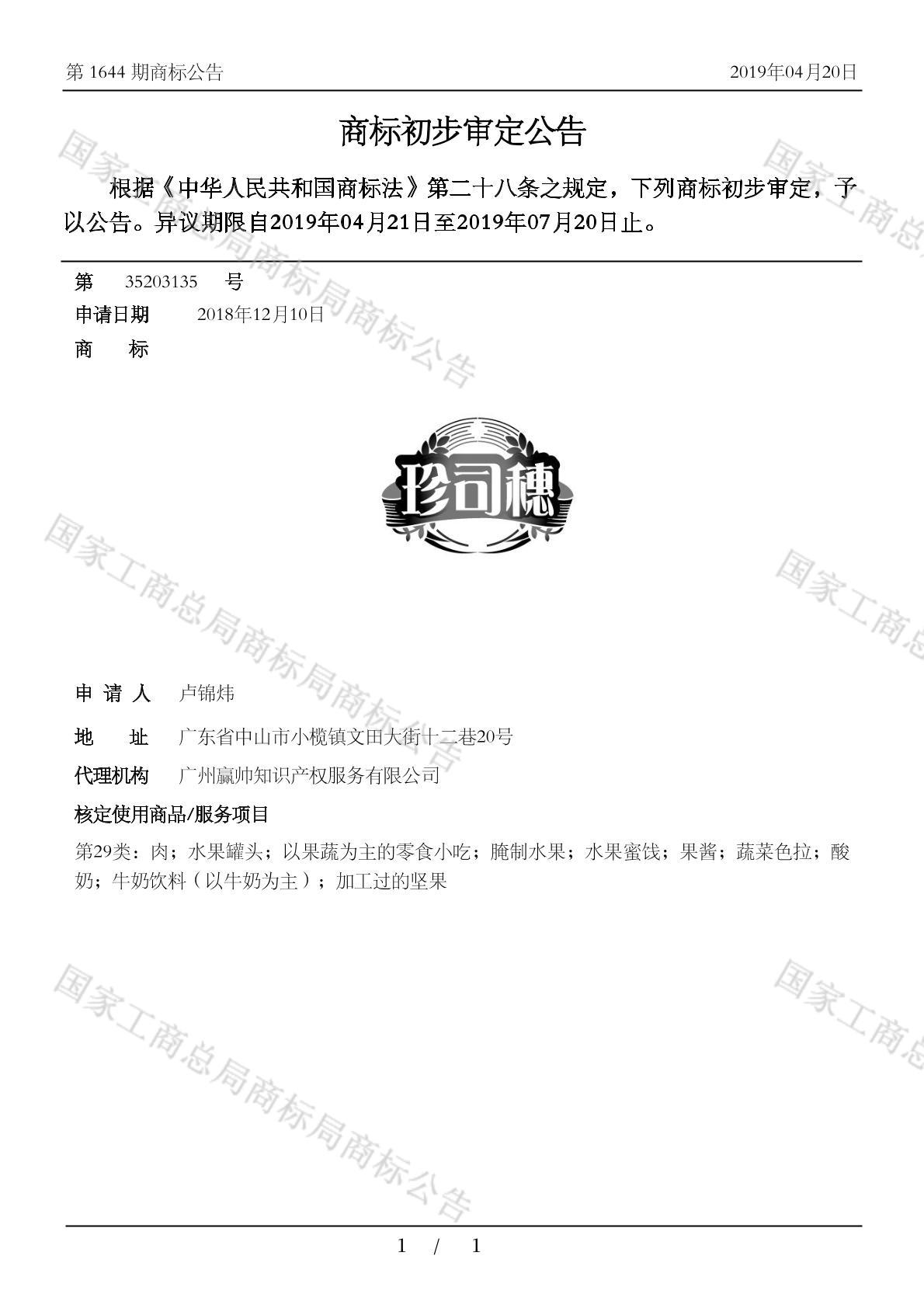 初审公告期号:1644