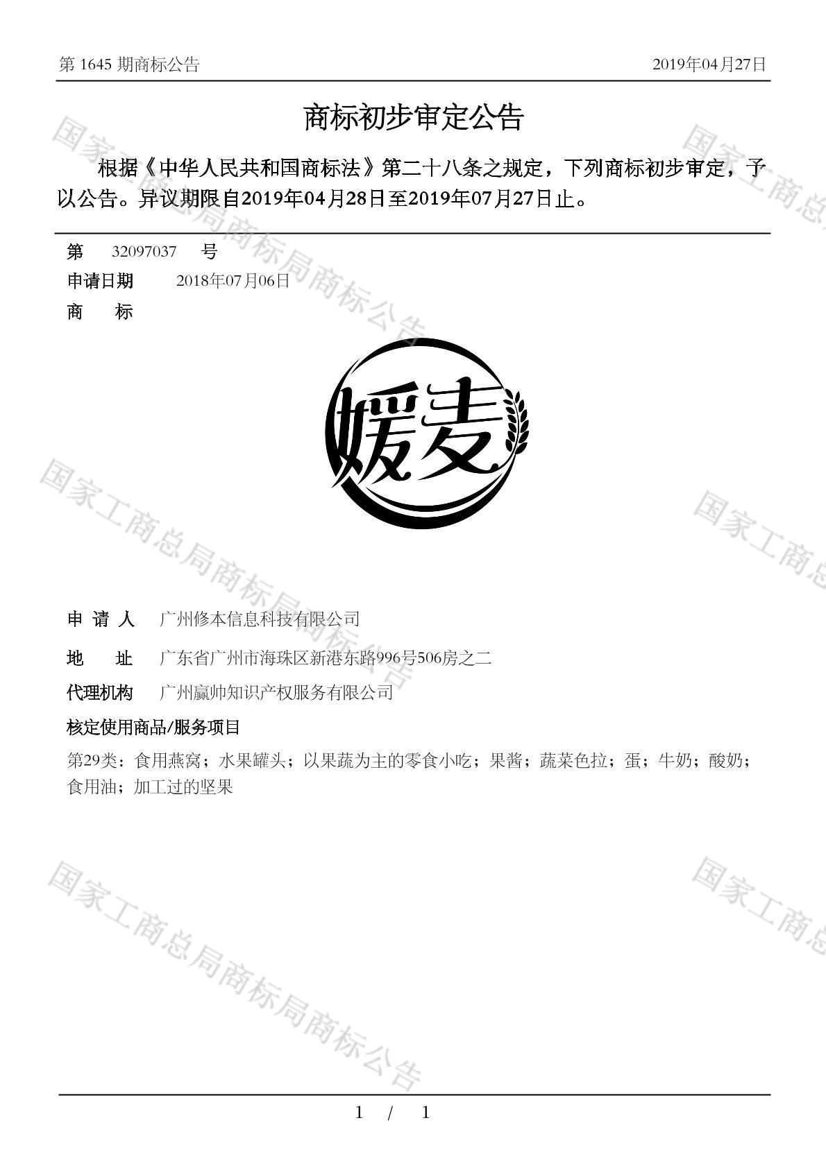 有效期限:2029-07-27 组合类型:中文注册号:32097037