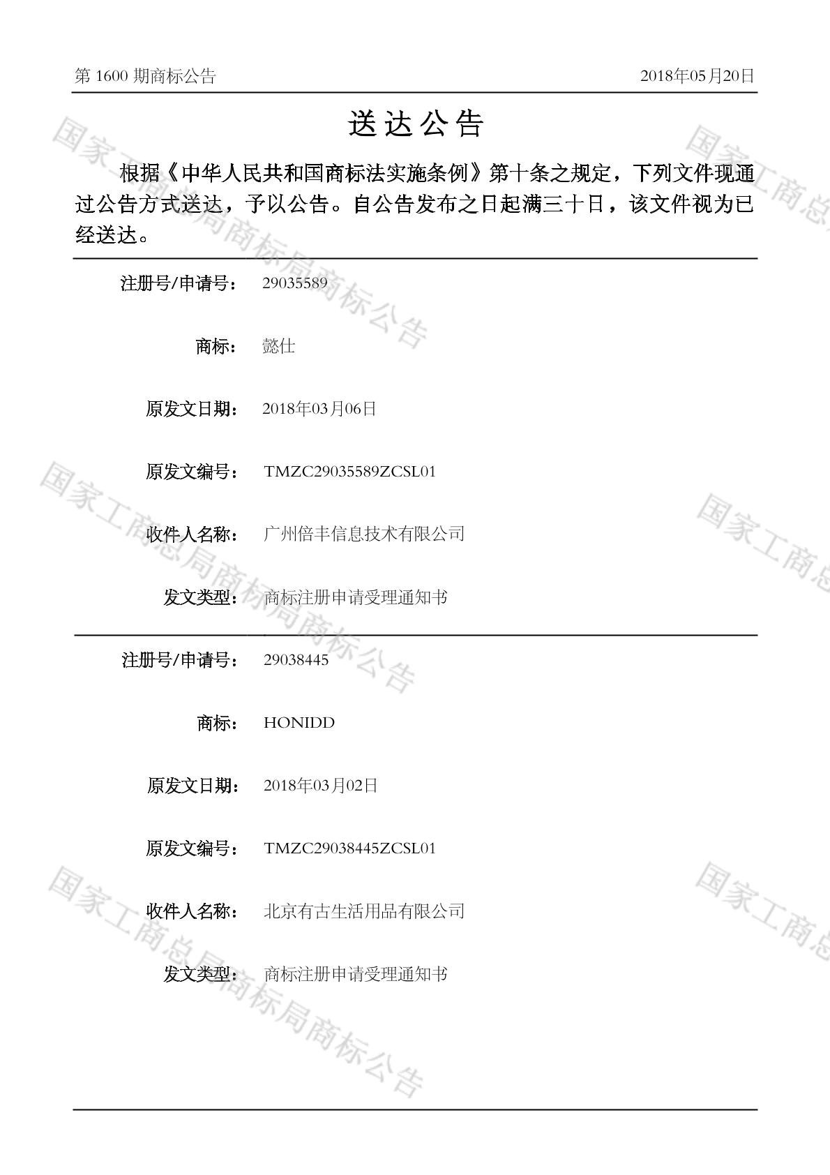 初审公告期号:1600