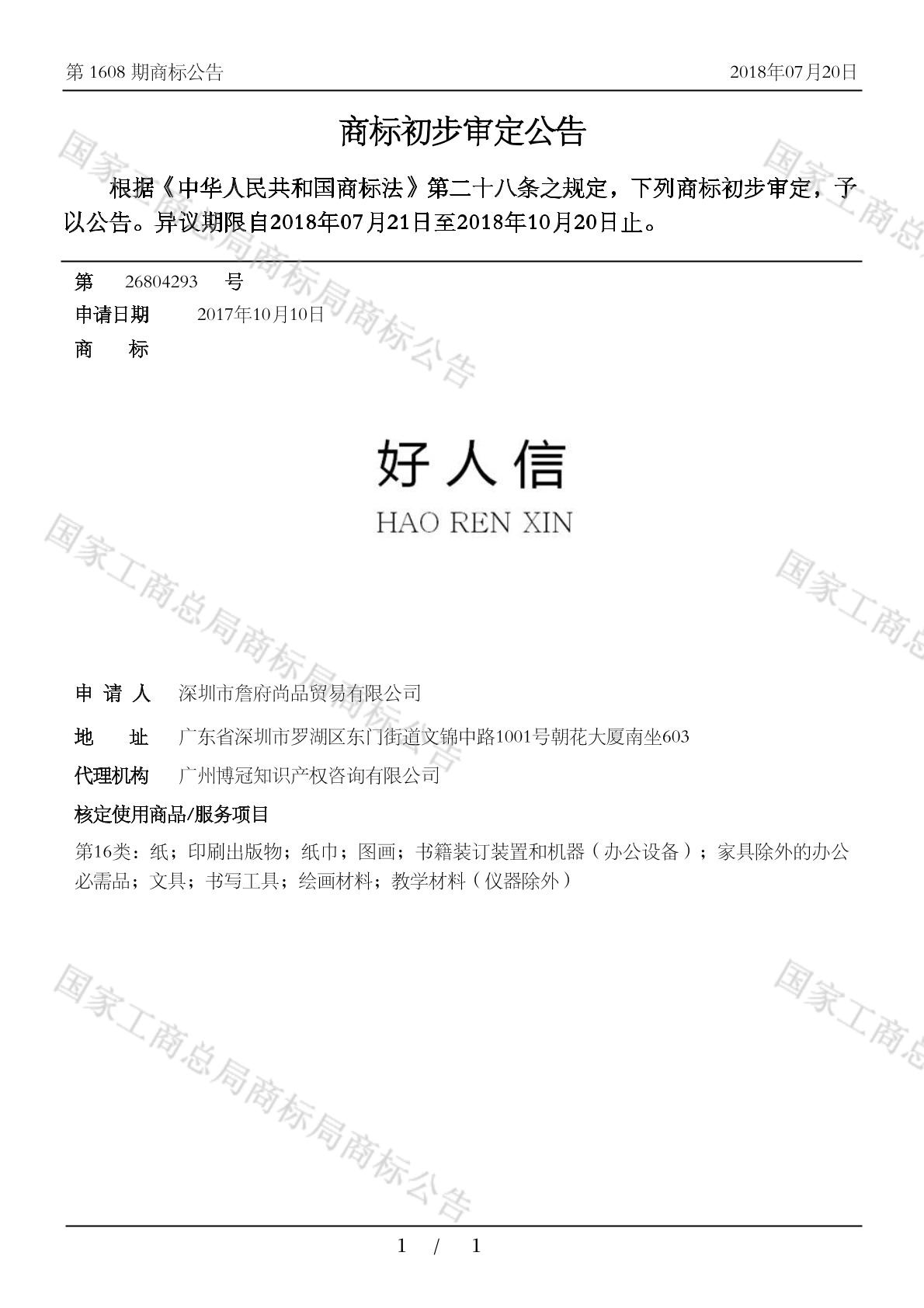 您当前位置:首页商标转让16类商标好人信