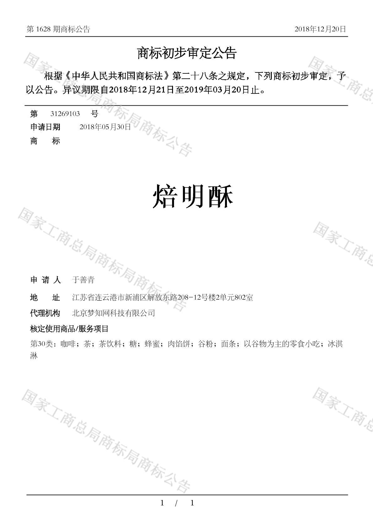 有效期限:2029-03-20 组合类型:中文注册号:31269103