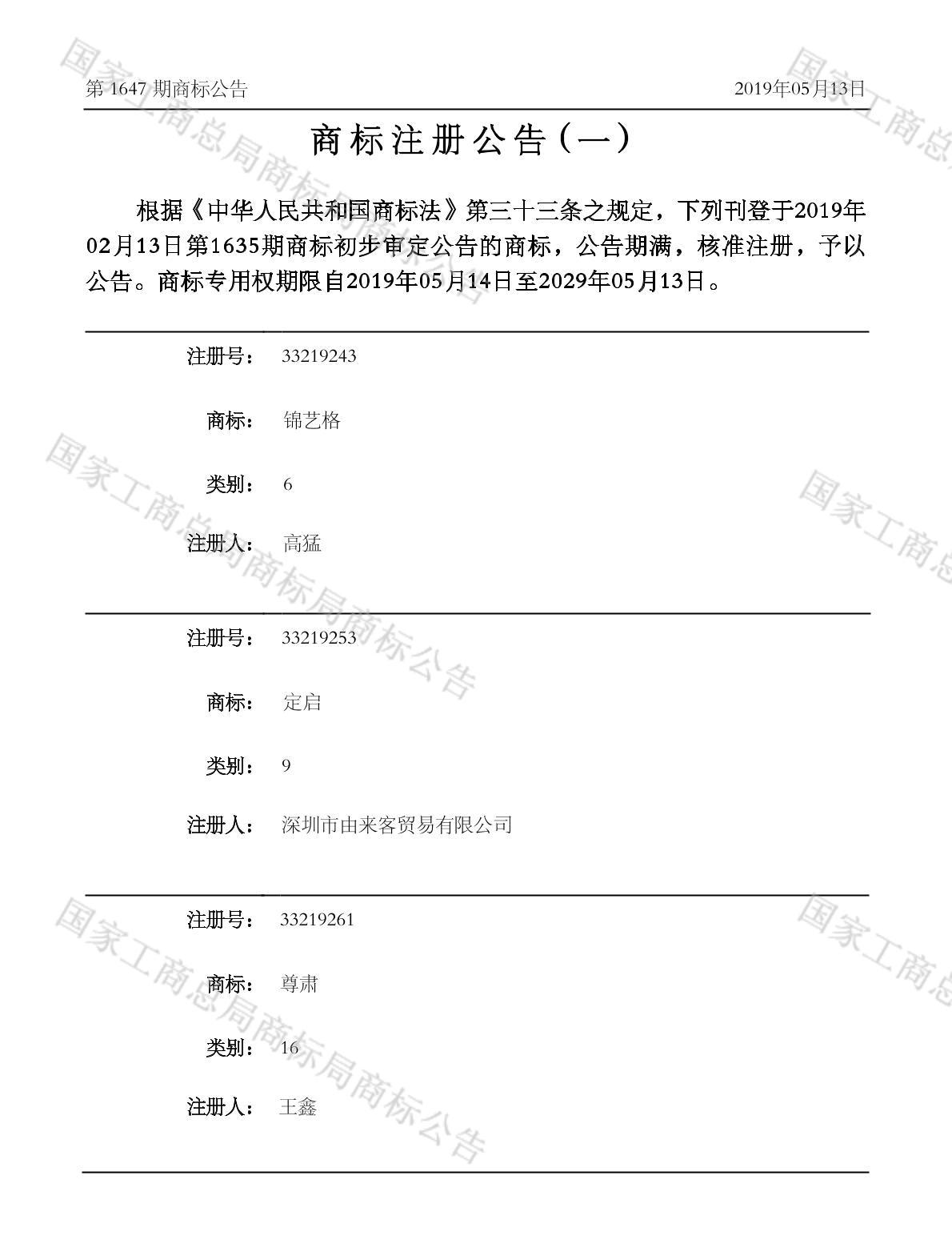 注册公告期号:1647