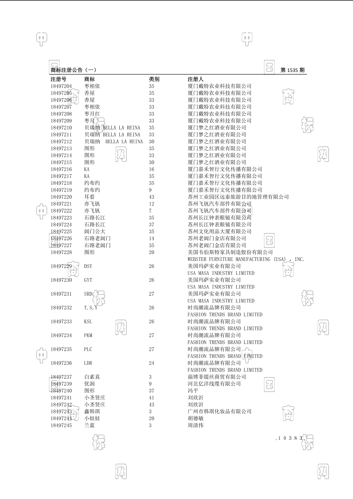 注册公告期号:1535