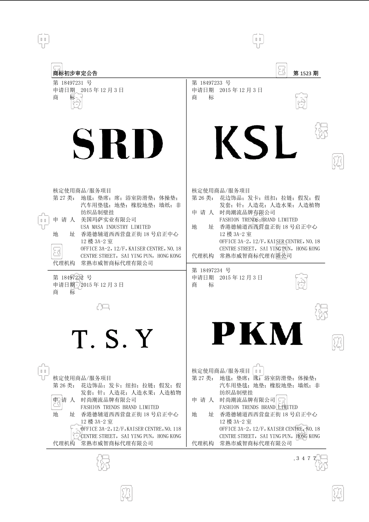 初审公告期号:1523