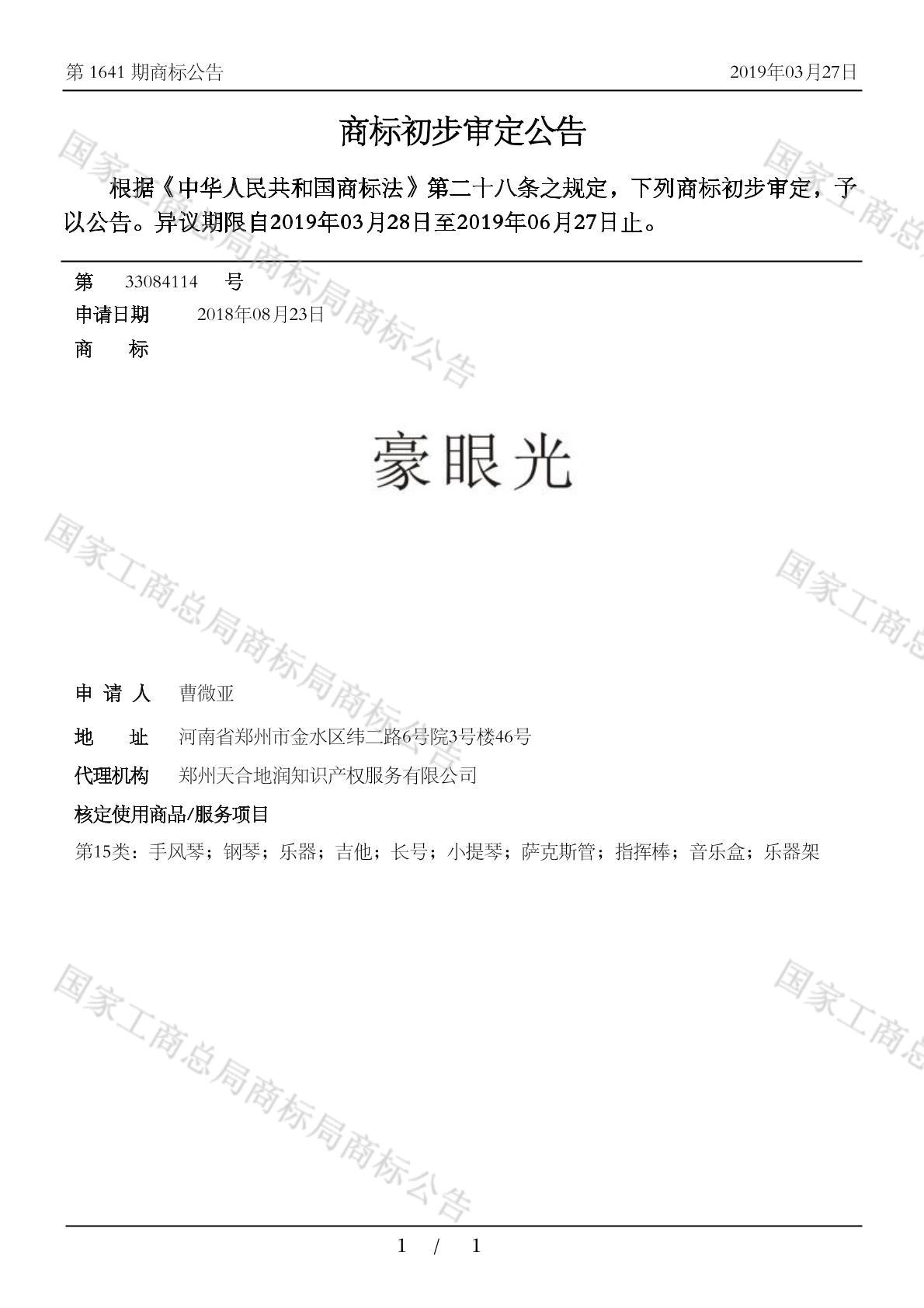 您当前位置:首页商标转让15类商标豪眼光