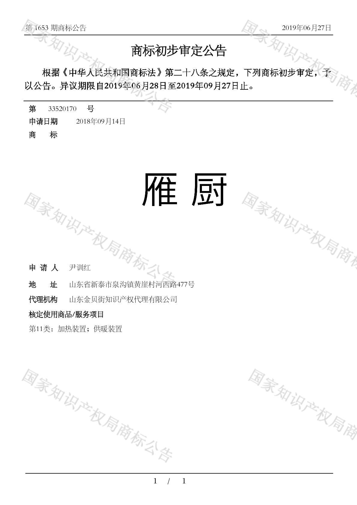 有效期限:2029-09-27 组合类型:中文注册号:33520170