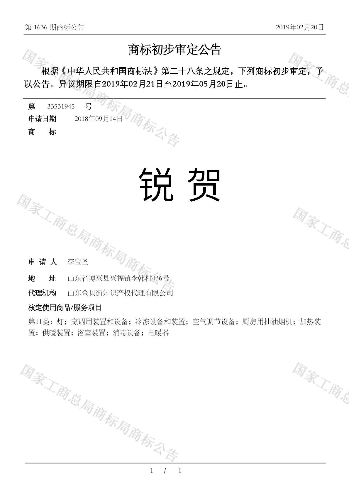 有效期限:2029-05-20 组合类型:中文注册号:33531945