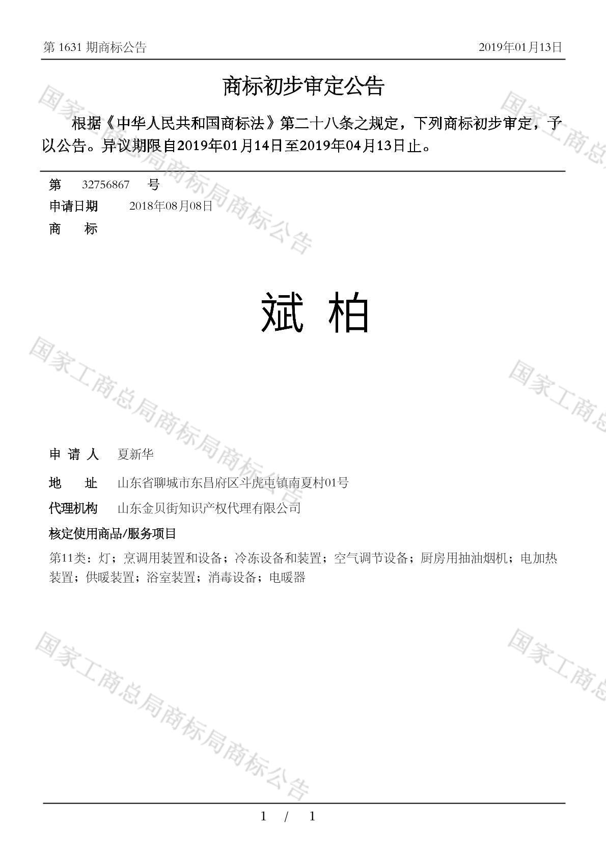 有效期限:2029-04-13 组合类型:中文注册号:32756867