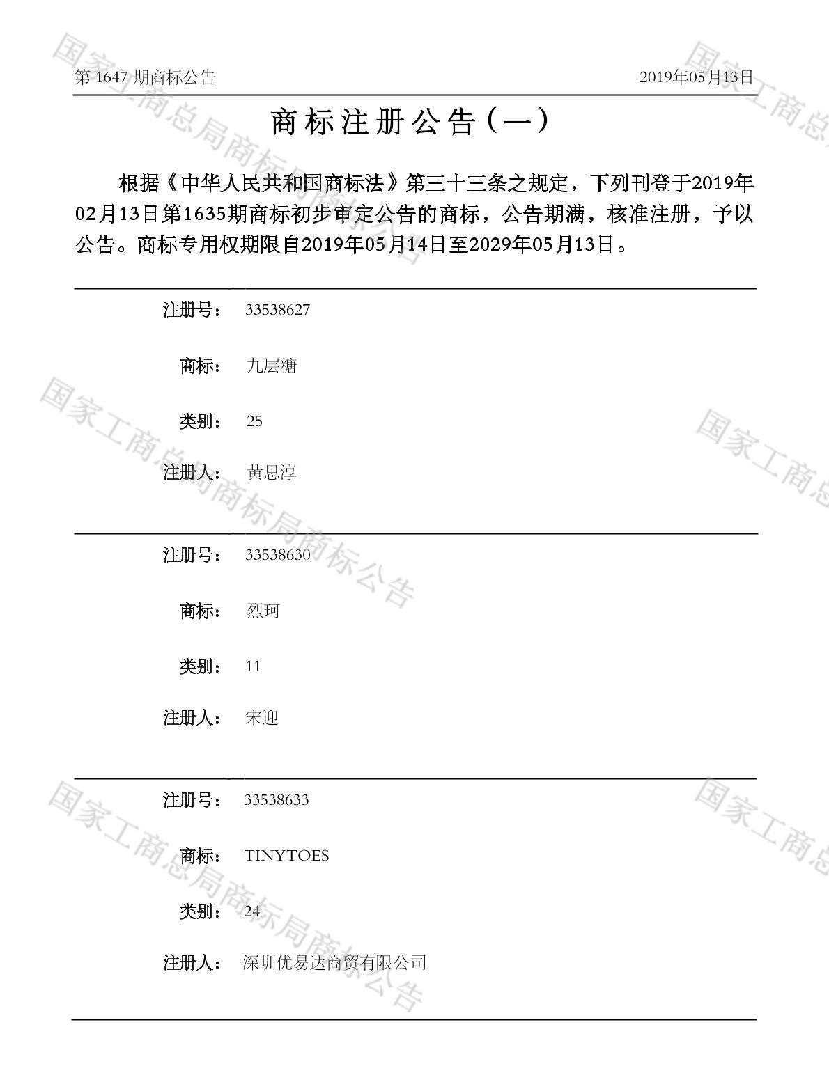 注册公告期号:1647