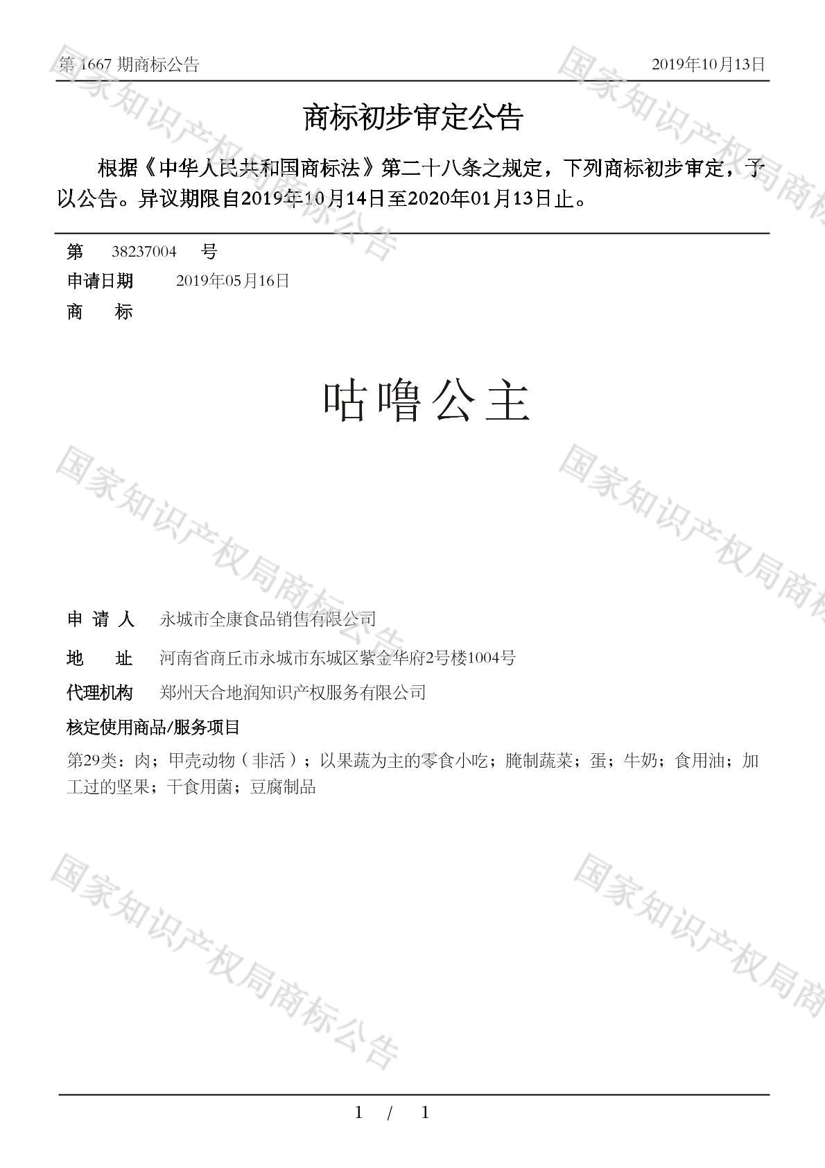 注册公告期号:1679