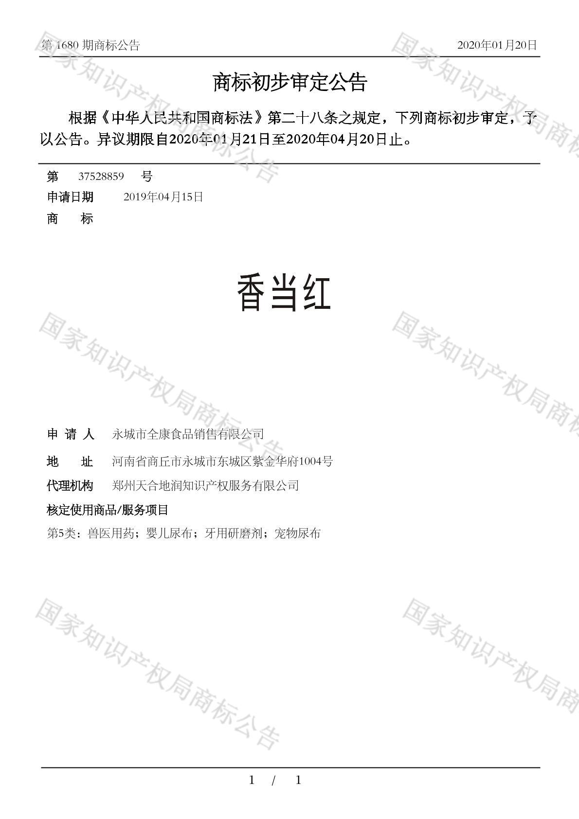 有效期限:2030-04-20 组合类型:中文注册号:37528859