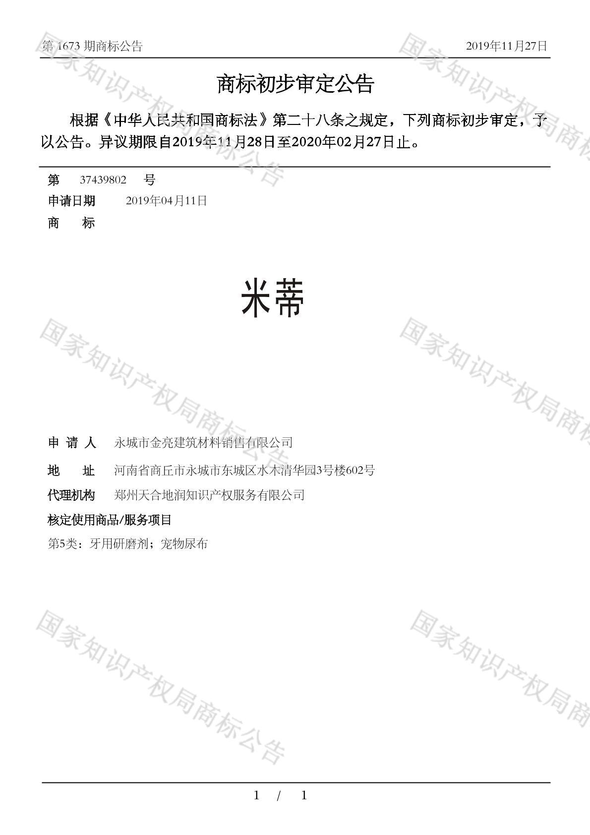 有效期限:2030-02-27 组合类型:中文注册号:37439802